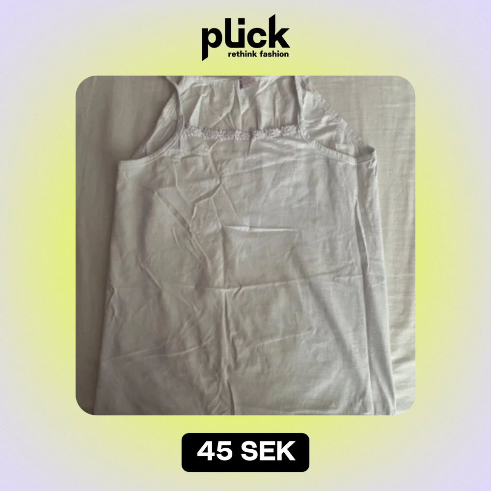 Säljer en söt vit linnetopp från Yildiz. Den är ärmlös och har en fin spetsdetalj längs halsringningen. Perfekt för sommardagar eller som ett basplagg under en kofta.