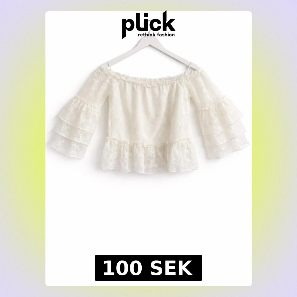 Superfin vit off shoulder-blus från Bubbleroom by Lovisa Barkman. Blusen har volangärmar i flera lager och är gjord i spets med romantisk känsla. Perfekt för dig som gillar en feminin och trendig stil.