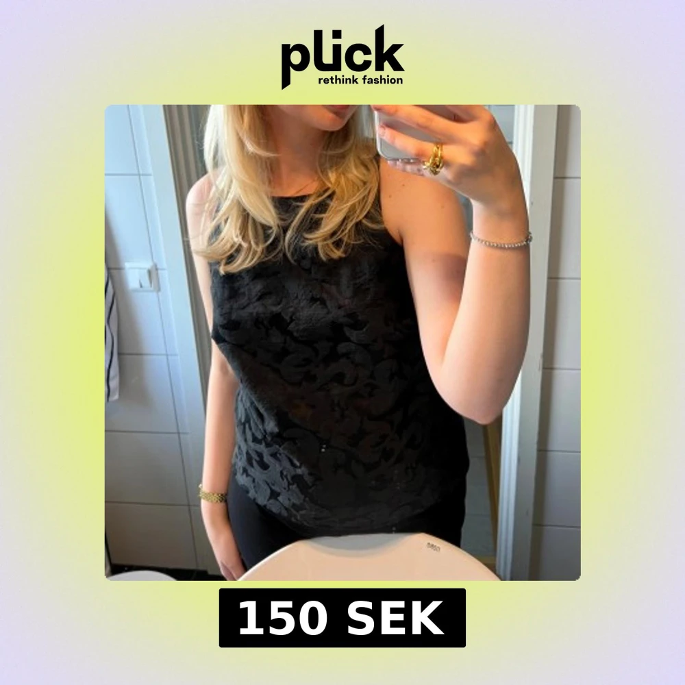 Säljer en svart ärmlös linnetopp med snyggt strukturerat mönster i tyget. Toppen har en rak passform och hög halsringning som ger en clean och modern vibe. Perfekt att styla med smycken och svarta jeans för en cool look.
