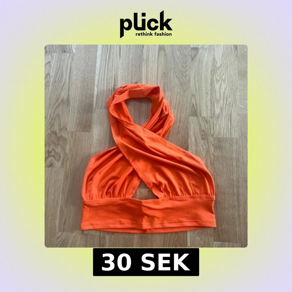Trendig orange omlott topp med halterneck-design. Toppen är ärmlös och har en öppen rygg vilket ger en snygg och luftig känsla. Perfekt för varma dagar eller en utekväll.