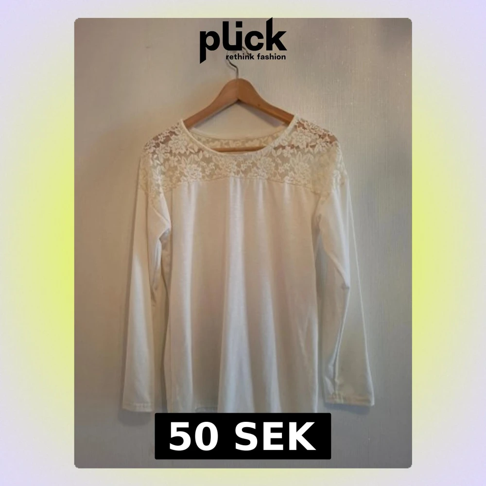 Säljer en vit långärmad blus med vackra spetsdetaljer och blommigt mönster över axlar och bröst. Blusen har rund halsringning och är tillverkad i mjukt material som känns skönt mot huden. Perfekt för dig som gillar romantiska detaljer och stilren look.