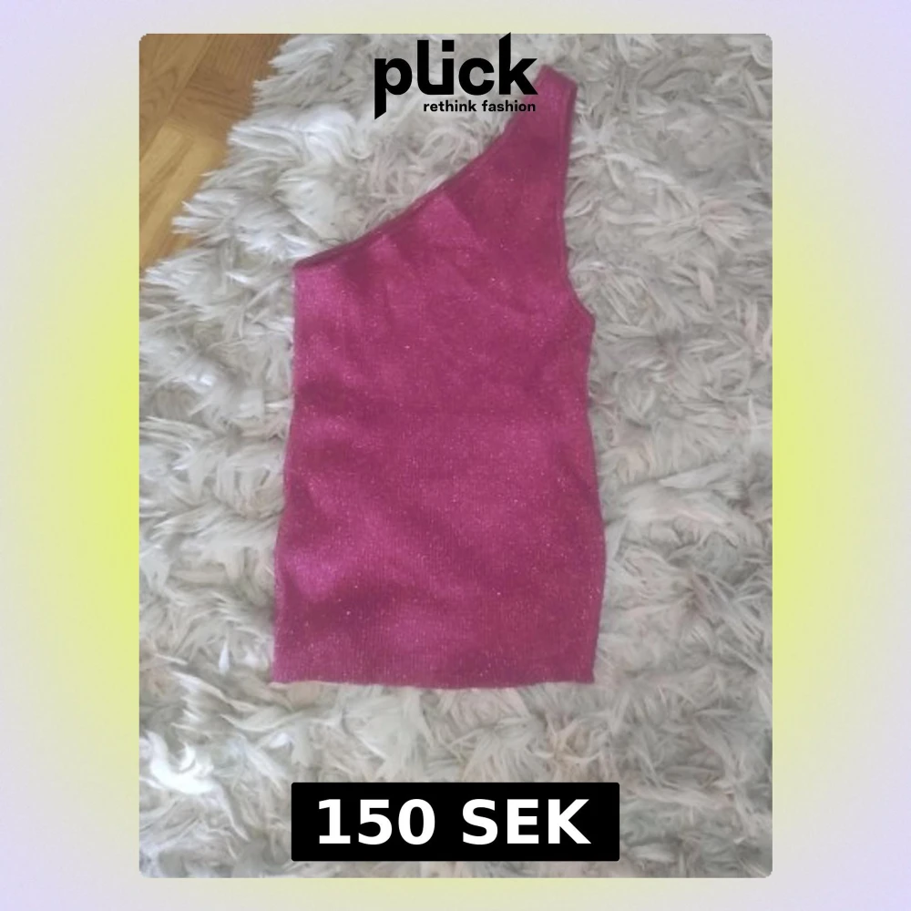 Säljer en glittrig rosa oneshoulder topp från Bebe. Toppen har en axel och är figurnära med metallictrådar som ger ett snyggt skimmer. Perfekt för dig som vill sticka ut och addera lite extra bling till din outfit.