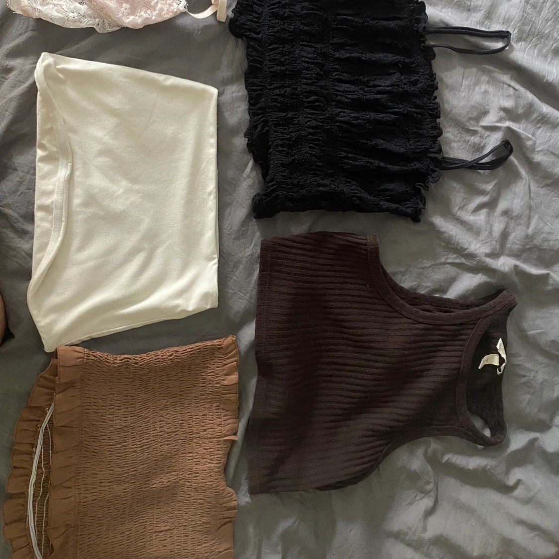 Säljer dessa toppar, alla är i stolek M förutom den vita som är i storlek S ❤️ säljer en för 50 alla för 200