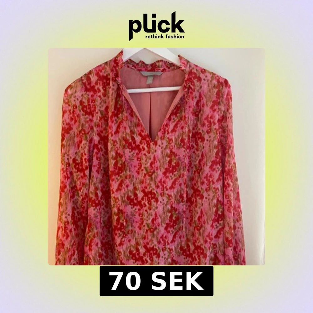 Säljer en luftig blus i rosa och rött med blommigt mönster.