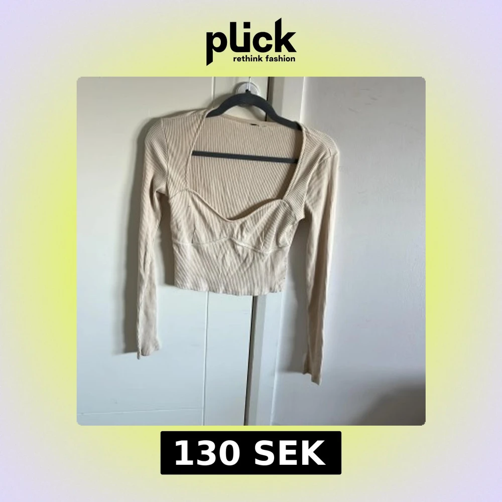 Säljer en beige croppad topp med lång ärm och snygg v-ringning. Toppen är ribbad och har en figurnära passform som framhäver siluetten. Perfekt för dig som gillar stilrena och trendiga plagg med lite edge.