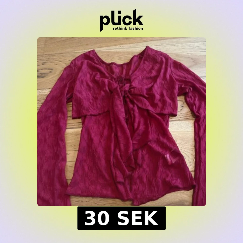 Säljer en vinröd omlottopp från SHEIN i storlek M. Toppen har långa ärmar, snygg knytning framtill och ett vågigt, ribbat mönster i tyget. Materialet är lätt och syntetiskt, perfekt för att skapa en cool och trendig look.
