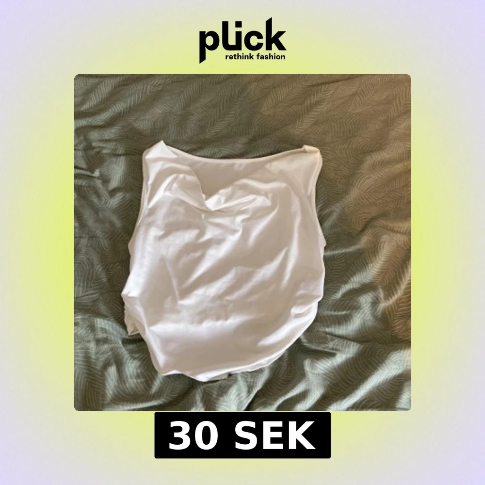 Säljer en vit ärmlös t-shirt med snygg drapering vid halsen. T-shirten har en enkel och clean look, perfekt för dig som gillar minimalistisk stil. Gjord i mjukt material som känns skönt mot huden.