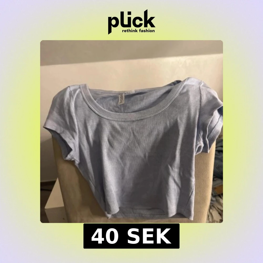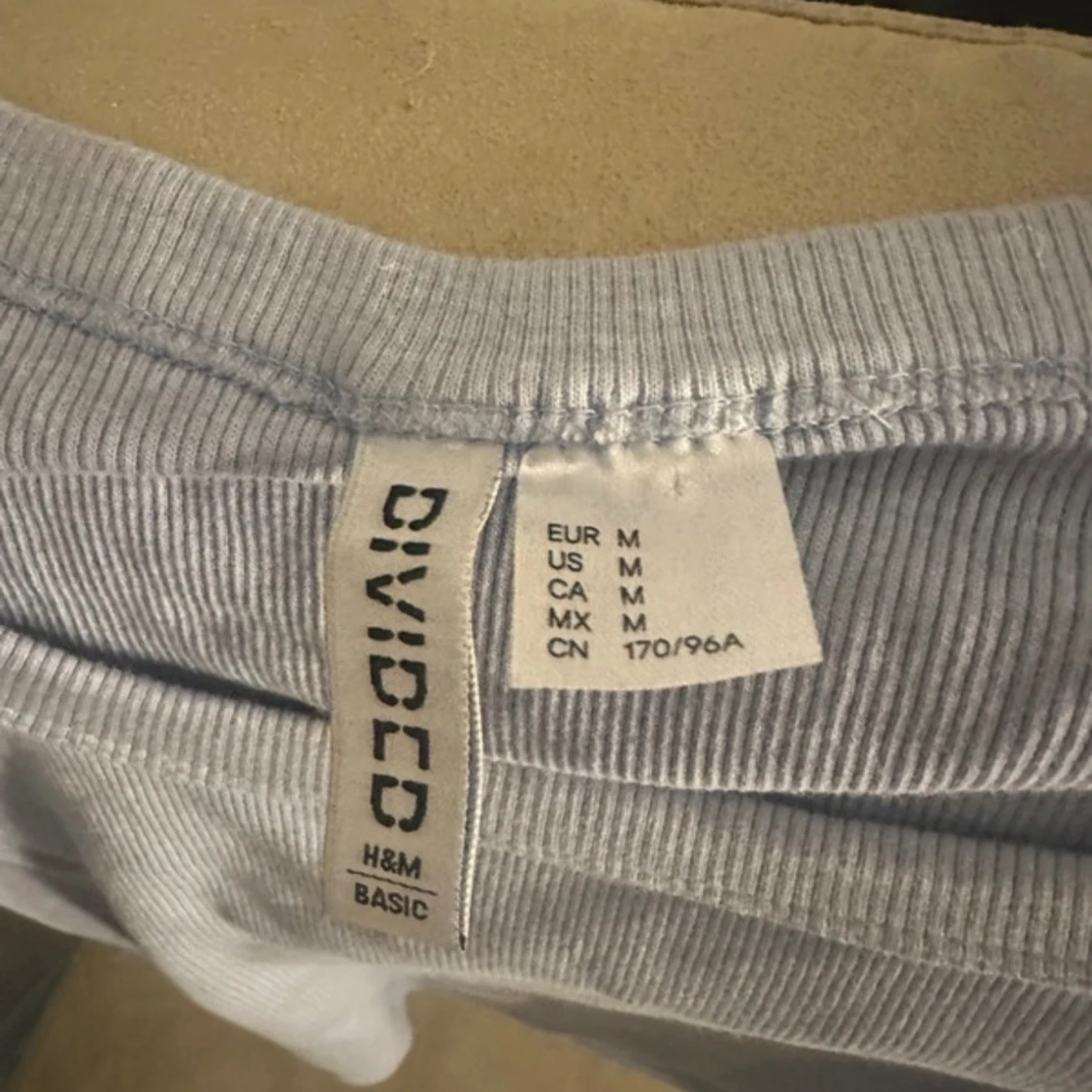 Säljer en ljusblå ribbad topp från H&M Divided. Modellen är croppad med korta ärmar och rund halsringning. Perfekt för dig som gillar en enkel men snygg stil. Supermjuk och stretchig i materialet.