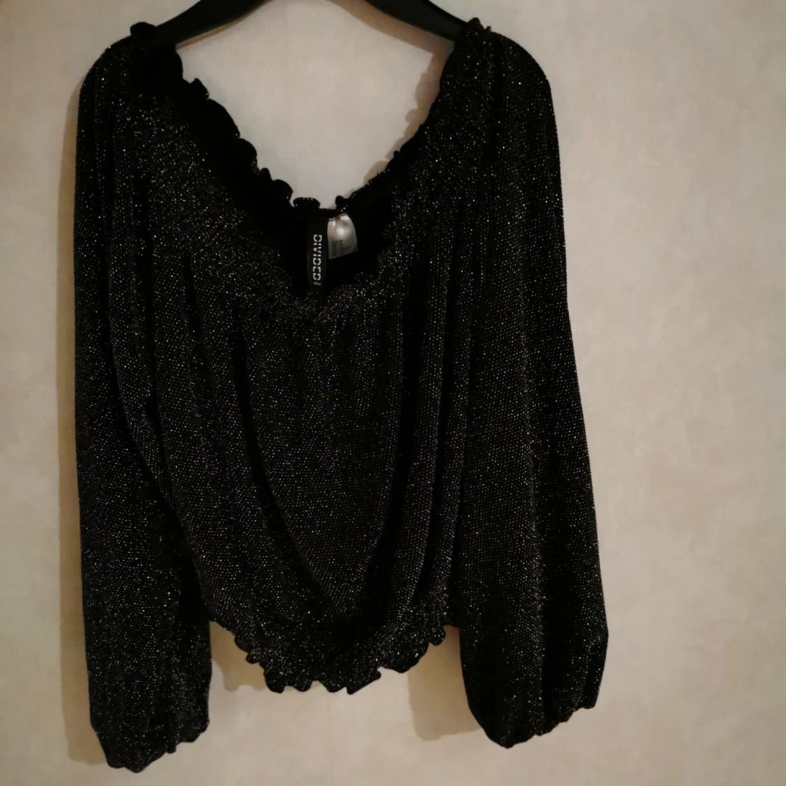 Svart glittrig Intimissimi topp - Supersnygg svart korsettopp från Intimissimi med sopiga glitterdetaljer. Tunn mesh med lätt utsvängd nederkant och dubbla smala axelband. Perfekt för dig som vill sticka ut lite extra. Prislapp kvar, oanvänd.