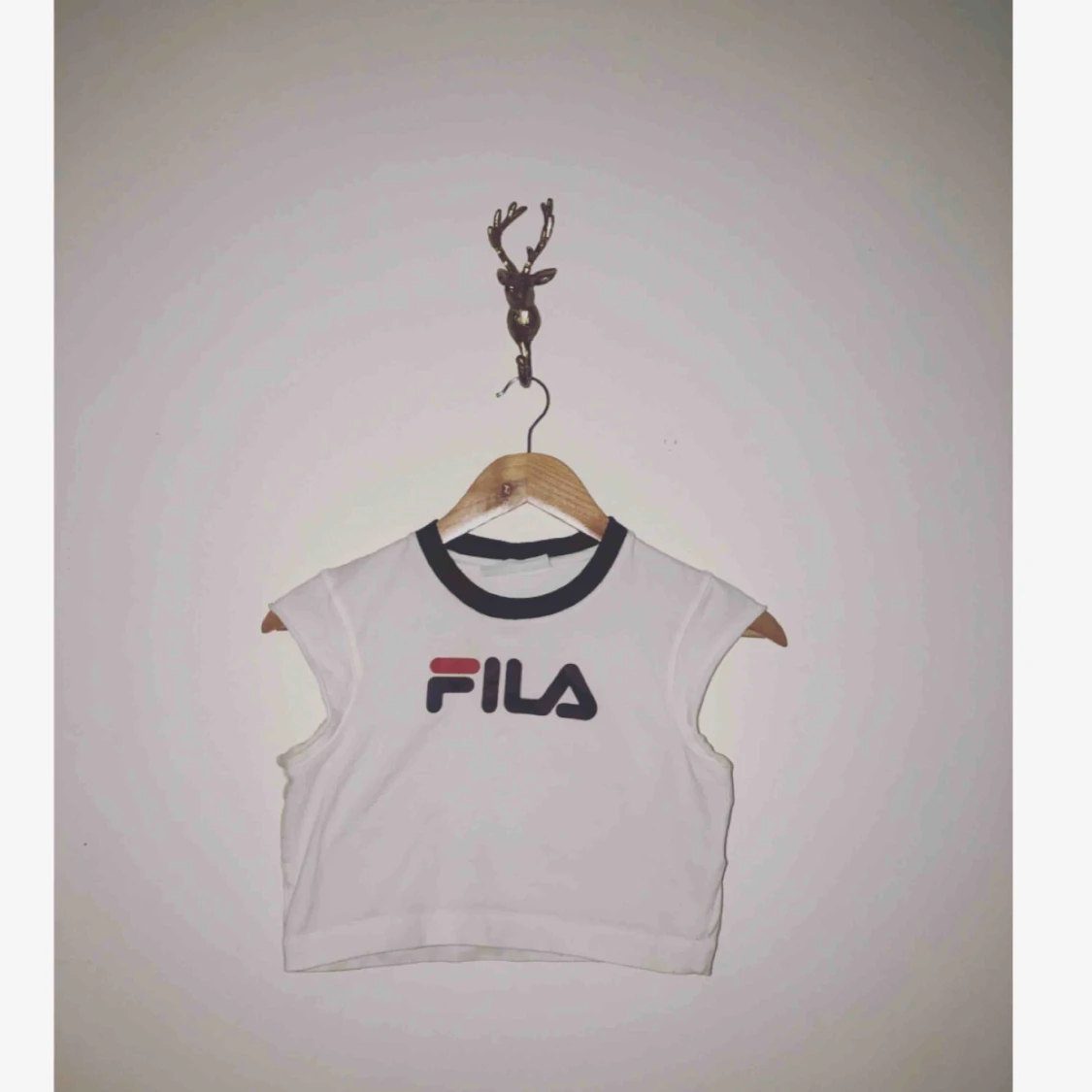Fila magtröja, jag är en blandning mellan XS/S och den passar mig perfekt. Står storlek 38, men är rätt liten för en 38a. Köpt i London ( äkta )