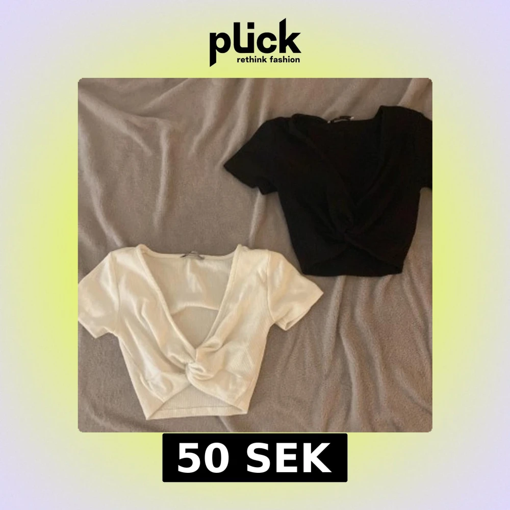 Två magtröjor som är vit och svart med en detalj som är vid magen typ som är knuten.Den vita är i storlek xxs och den svarta är xs och dem kommer kosta 50kr st