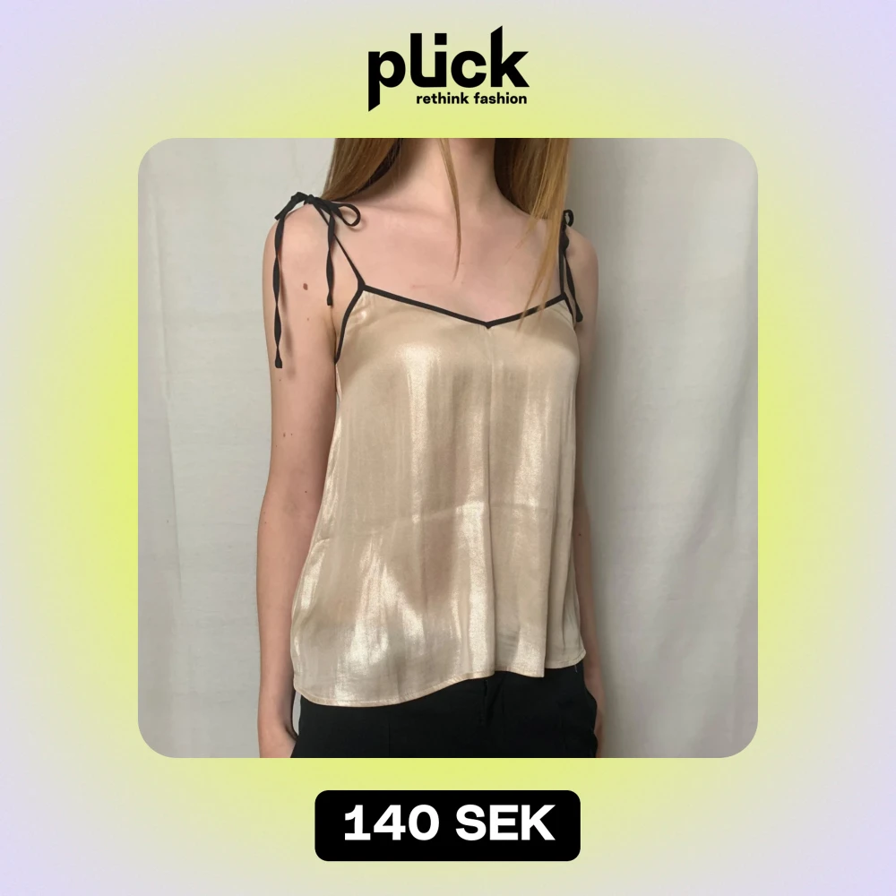 Beige/rosa linne med glansigt material och svarta band som knyts vid axlarna. Perfekt för en utekväll eller fest!