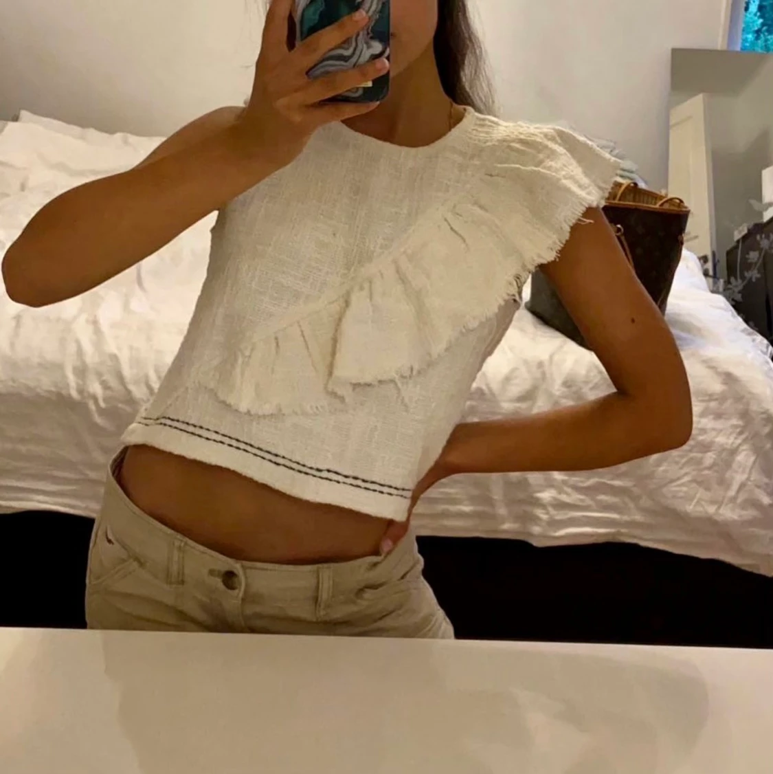 Benvit oversize magtröja med volang