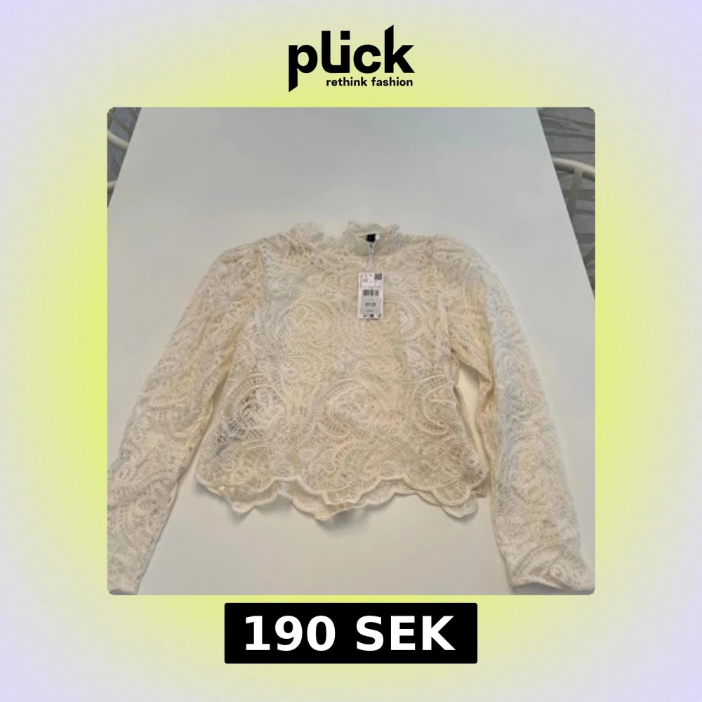 Elegant vit spetsblus från Mango med långa ärmar och ett vackert mönster. Perfekt för att ge en romantisk touch till din outfit. Blusen har en hög krage och är tillverkad i ett delikat spetsmaterial.