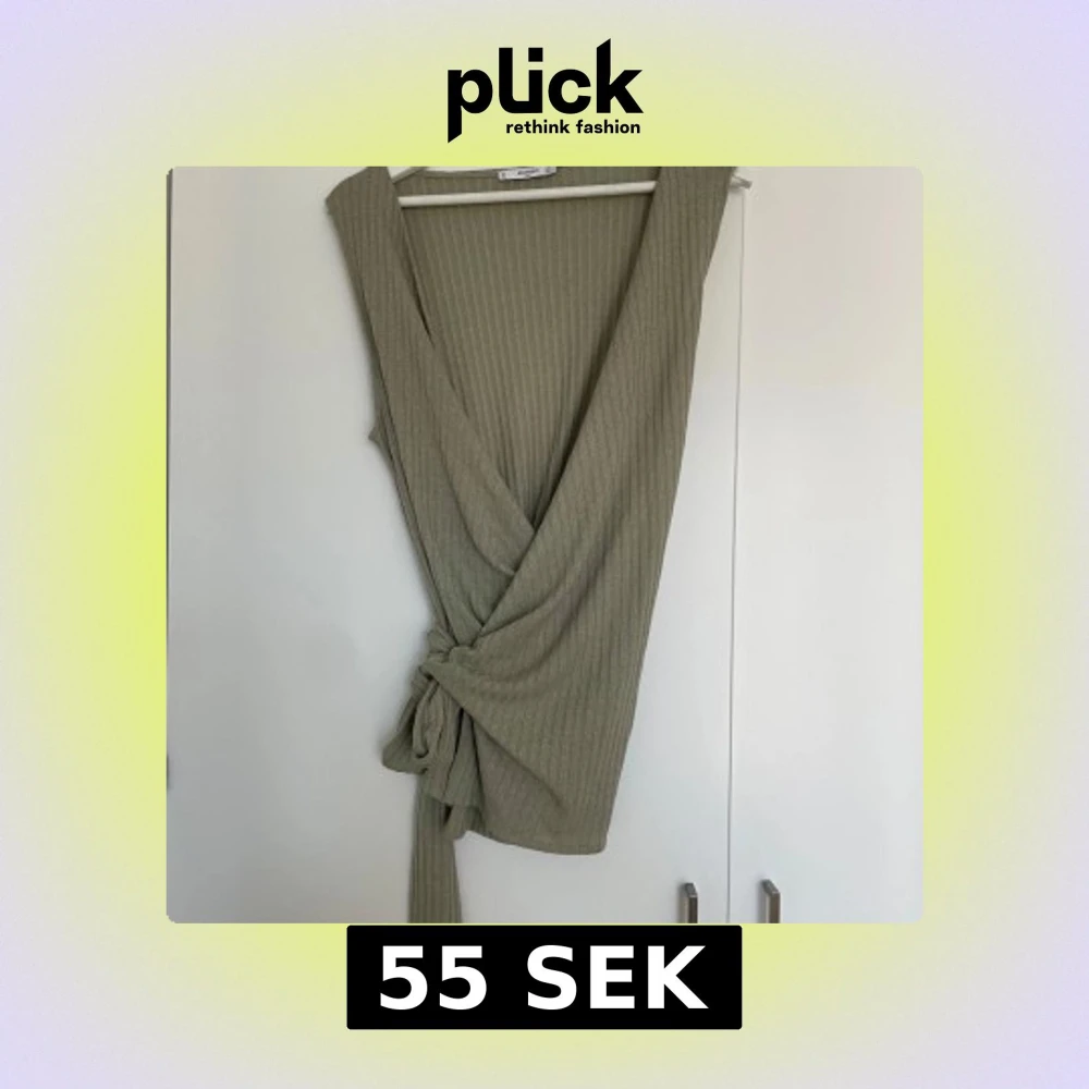 Snygg ribbad omlottopp från Mango i en ljusbeige nyans. Toppen är ärmlös, har djup v-ringning och knyt i sidan för en cool och avslappnad look. Perfekt att styla över en skjorta eller t-shirt för en trendig layering-effekt.
