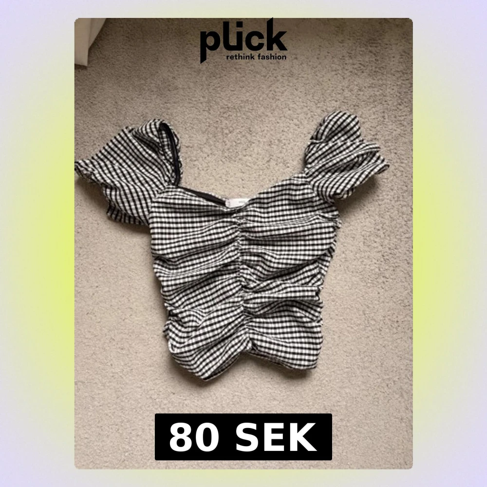Supersöt topp med svartvitt rutigt mönster och puffiga korta ärmar. Toppen har rynkade detaljer framtill som ger en snygg formad look. Toppen är ifrån Mango och är i storlek EUR M med en dragkedja på sidan. Jag säljer den då den är för liten för mig :)