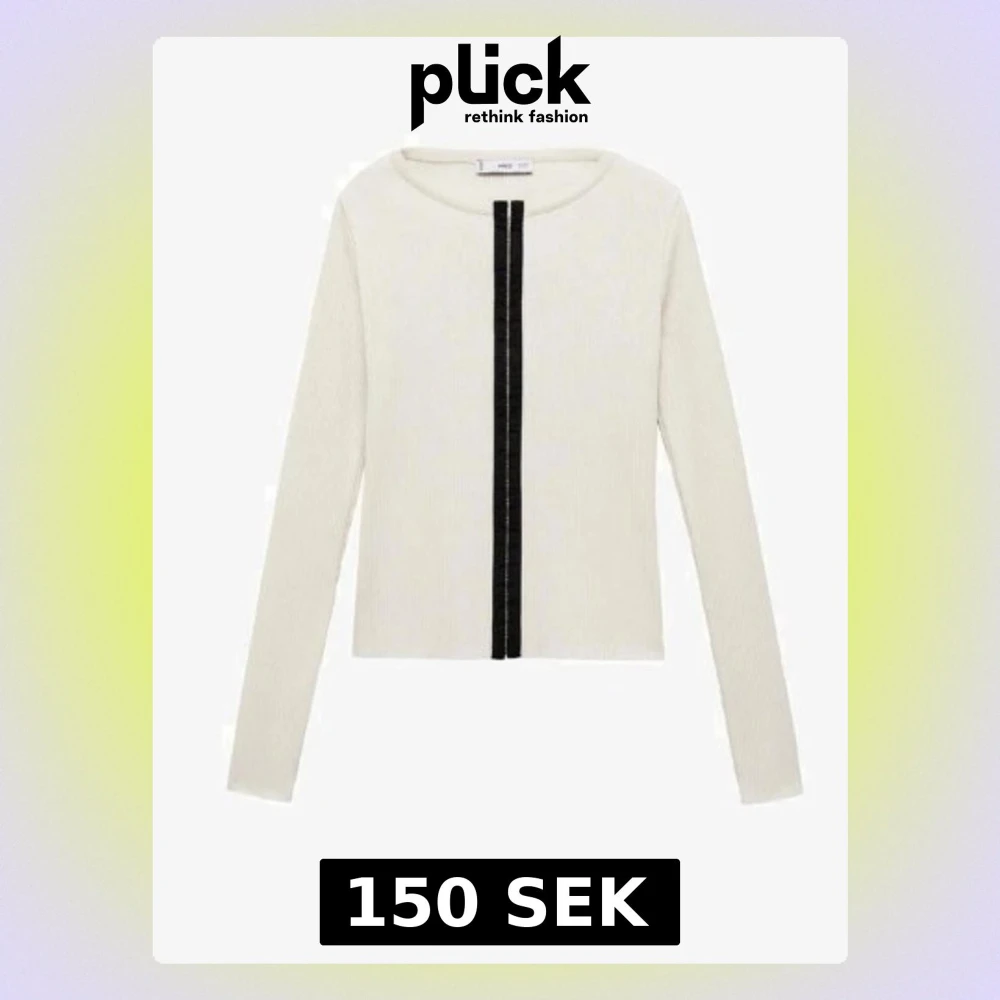 Vit långärmad topp från Mango med ribbad struktur och en svart vertikal detalj framtill. Rund halsringning och figurnära passform som ger en clean och modern look. Perfekt att styla med jeans eller kjol.