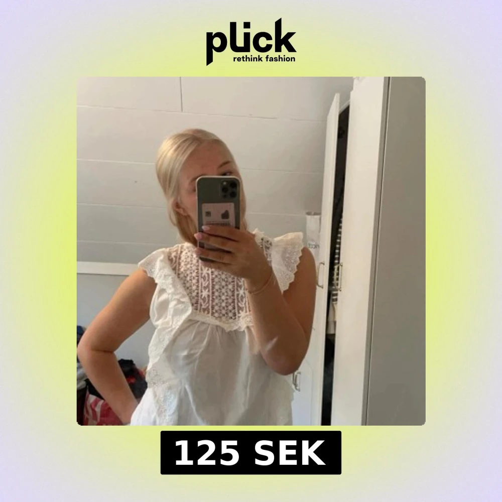 Supersöt vit blus med broderad spets upptill och volangdetaljer längs axlarna. Ärmlös modell med romantisk känsla och luftig passform. Perfekt för dig som gillar en feminin och trendig stil.