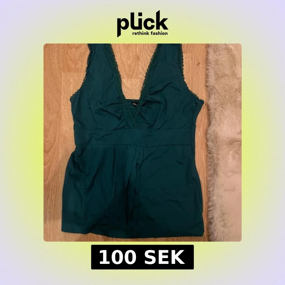 Mörkgrön ärmlös topp med djup v-ringning och spetsdetaljer längs kanterna från mango. Storlek S men passar även M eftersom den är stretchy.