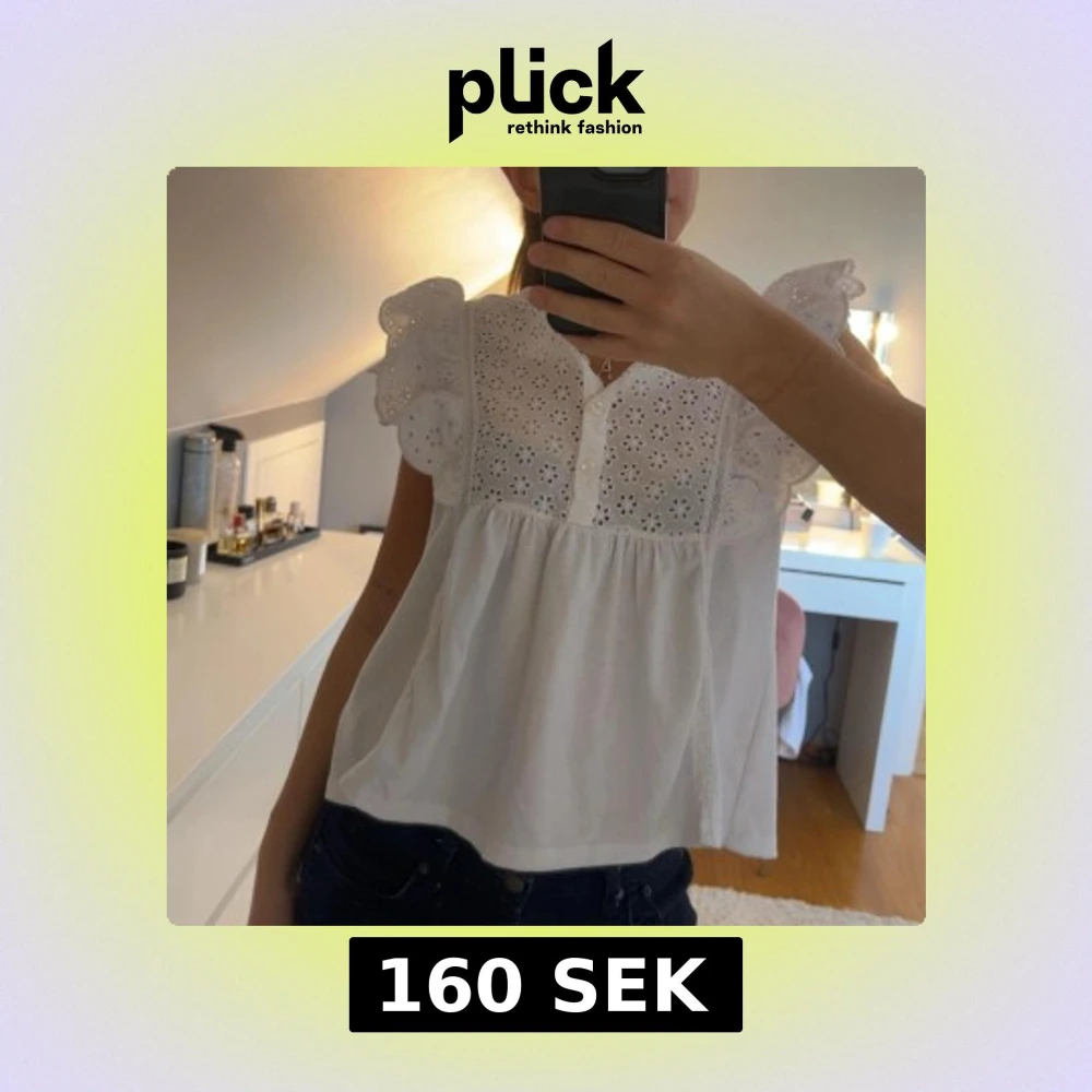 Supersöt vit blus från Mango med broderade blommor och knappar framtill!