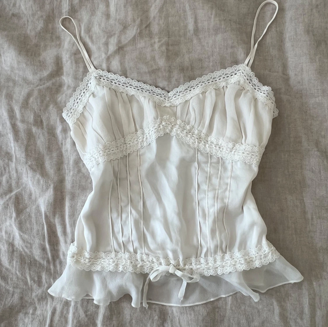 Fin vit sidentopp med spetsdetaljer