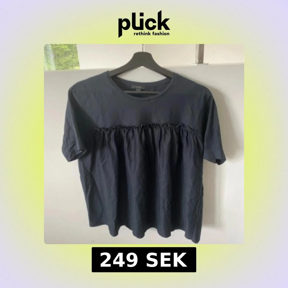 Svart blus från COS med rund halsringning och korta ärmar. Modellen har en unik rynkdetalj över bröstet som ger en cool och avslappnad siluett. Perfekt för dig som gillar minimalistisk stil med en twist.