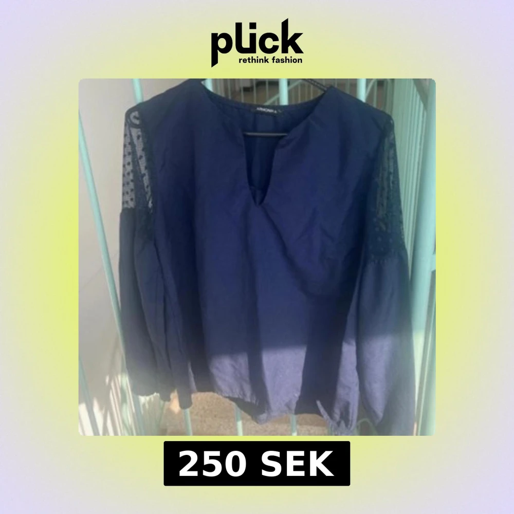 Snygg marinblå blus med v-ringning och långa ärmar i spetsdetaljer. Blusen har en lös passform och är perfekt för dig som gillar stilrena plagg med en twist. Ärmarna har diskreta prickar i spetsen för extra detalj.
