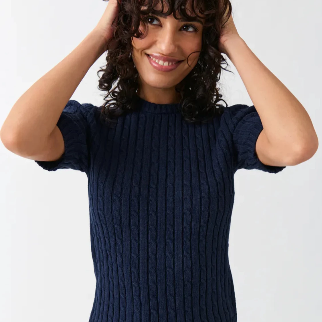 Jättesnygg marinblå trekvarts, cable mönstrad (flätad) liten i strl, helt ny med prislapp kvar och aldrig använd pga att den inte passade💞💞