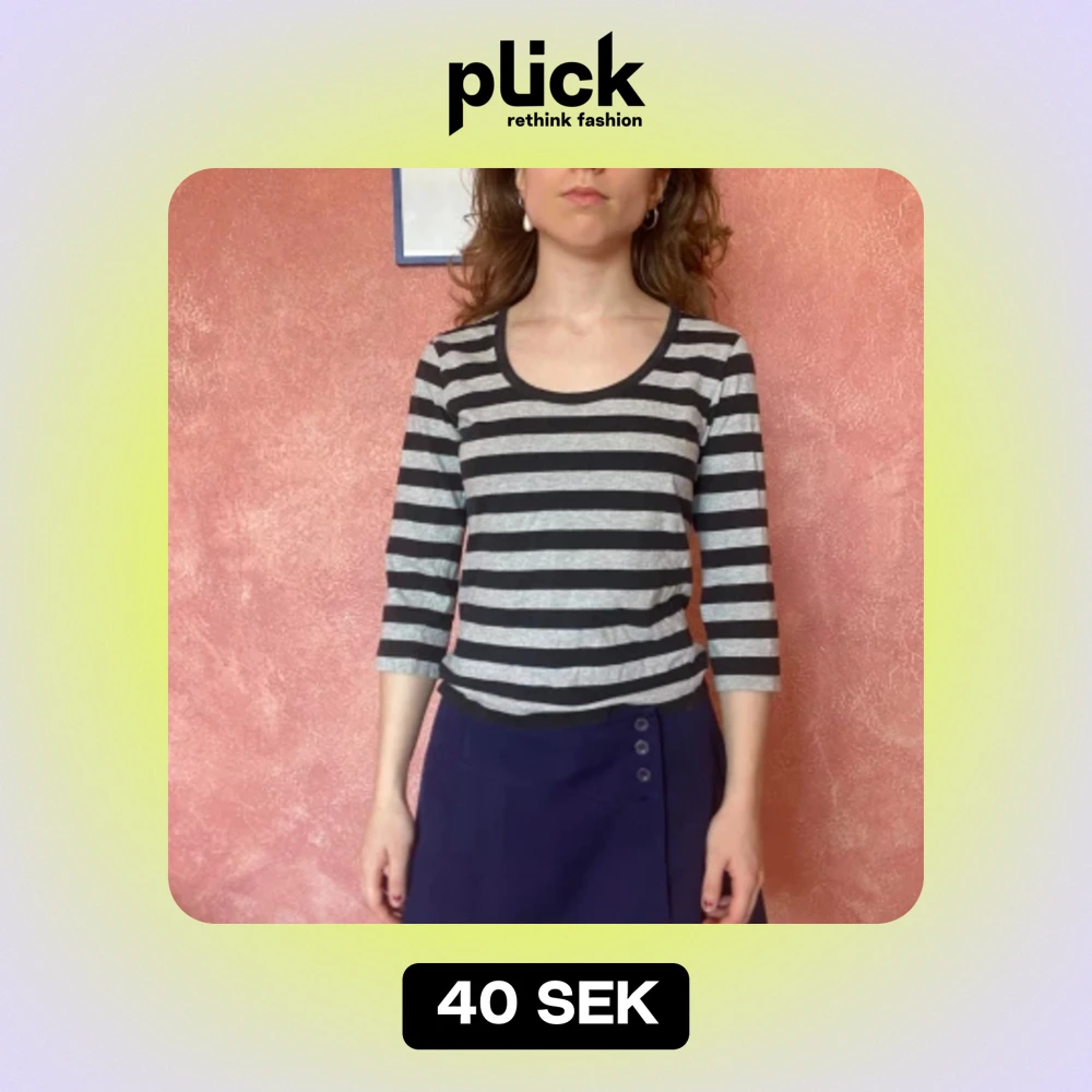 En randig, trekvartsärmad tröja från Filippa k, köpt second hand och knappt använd. Snabb affär prioriteras! Hon på bilden är 160 cm och en xs/s men den passar mig som är en M.