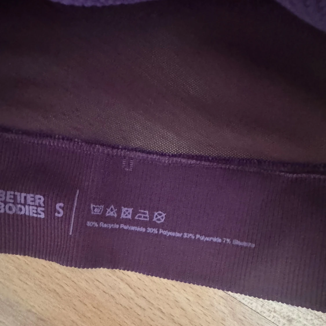 Två croppade mesh-toppar från Better Bodies, en i svart och en i lila. Båda är ärmlösa med transparent mesh över bröstet och logga nertill. Perfekta för gymmet eller träning, med tight passform och sportig look.