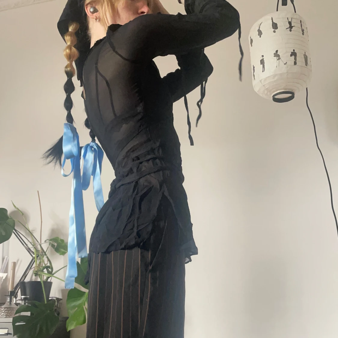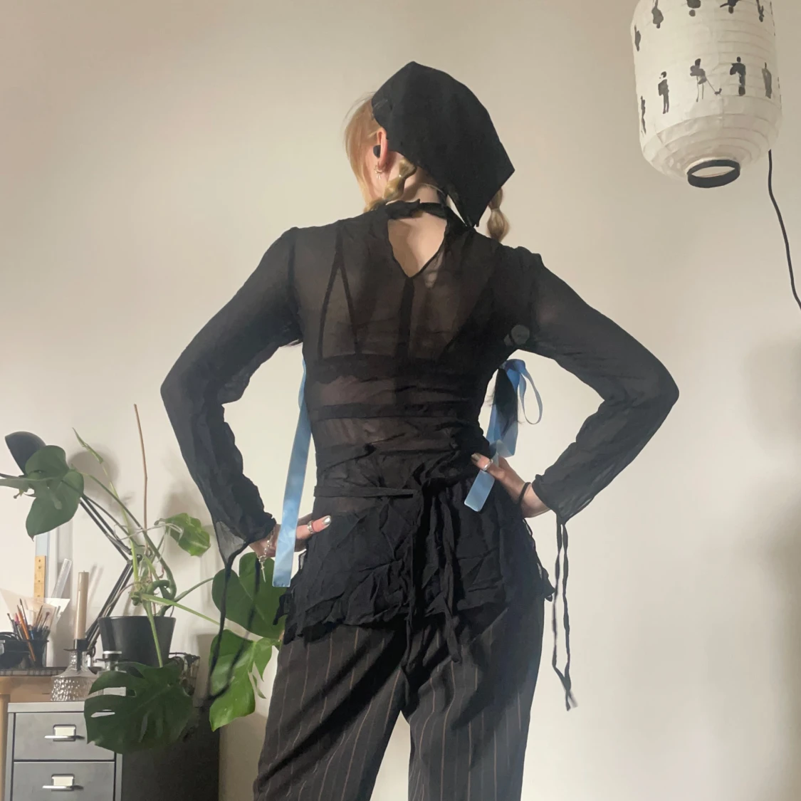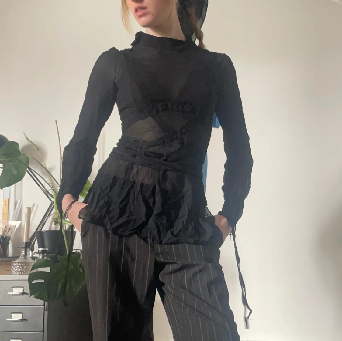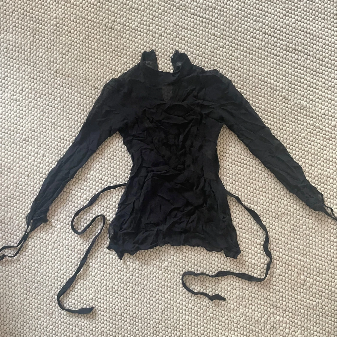 Svart meshtopp med dragkedja i sidan och knytband runt midjan och vid Ă€rmsluten đ«¶đ» SĂ„ snygg att ha pĂ„ fest!