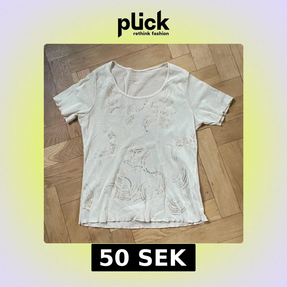 gul/beige unik meshtopp med gulddetaljer och rhinestones pĂ„ framsidanđŒâŁïž stĂ„r ingen storlek men skulle sĂ€ga S/M. (sitter löst pĂ„ mig som har S)