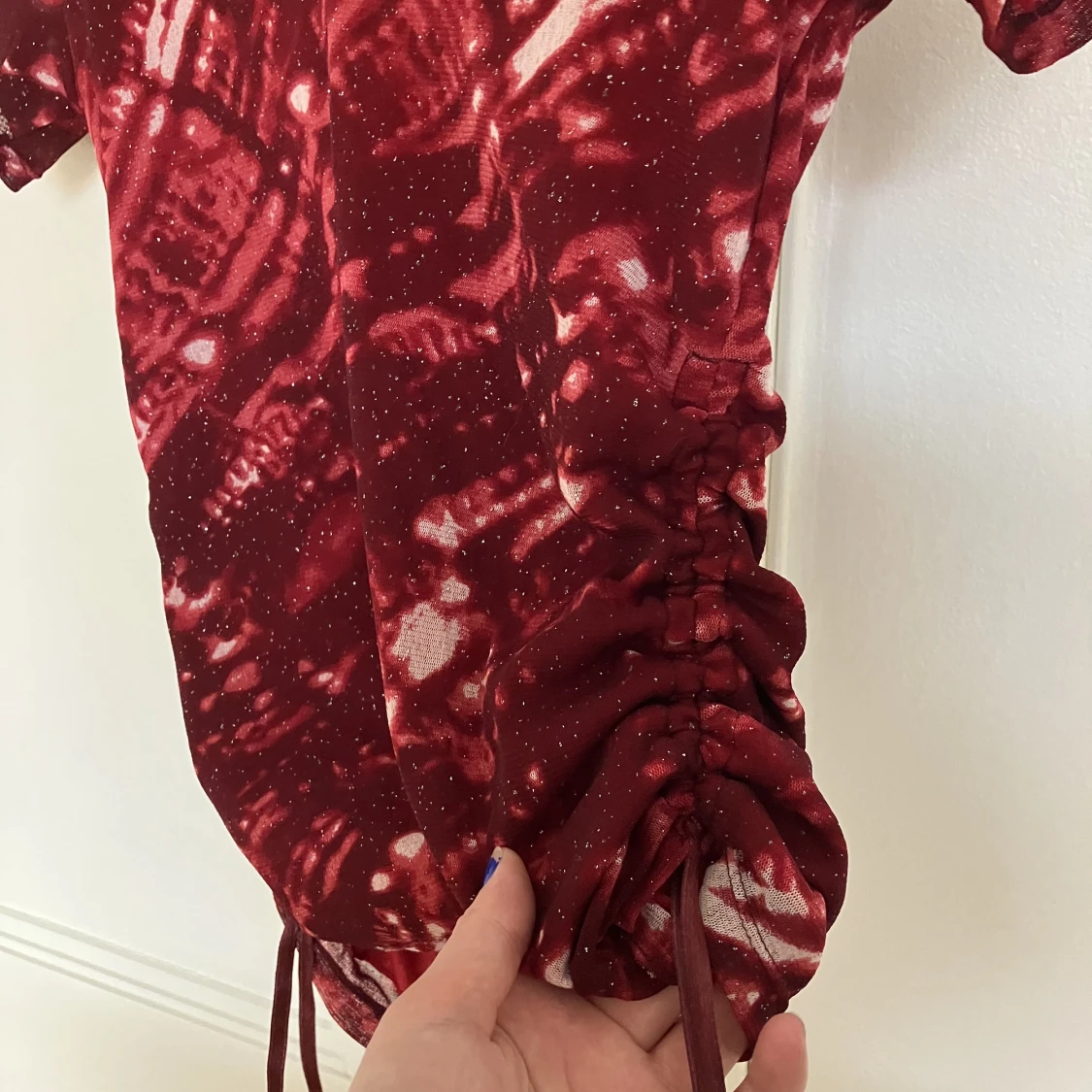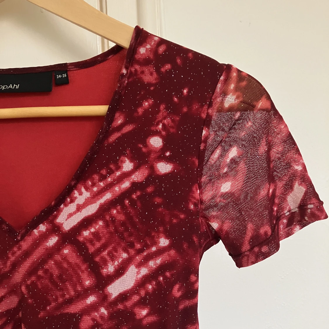 Fantastik topp köpt på plick, har silvriga stenar och band i sidorna som går att dra åt för att ändra passform/göra den kortare. Märkt 34-36 men passar även större då den är stretchig :)