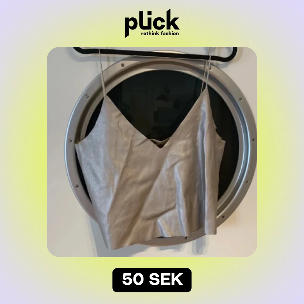 Metallisk faux leather topp i silver/champagne färg. Aldrig använt. Strl L.