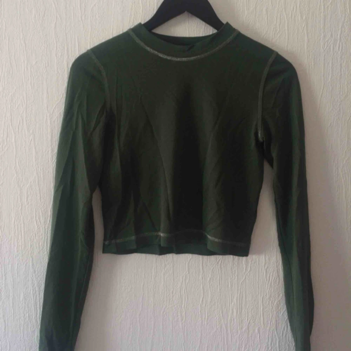 Glittrig, grön midjetröja från Weekday. Tunt material och lite genomskinlig. Fraktkostnad tillkommer, kan också mötas upp i Malmö.