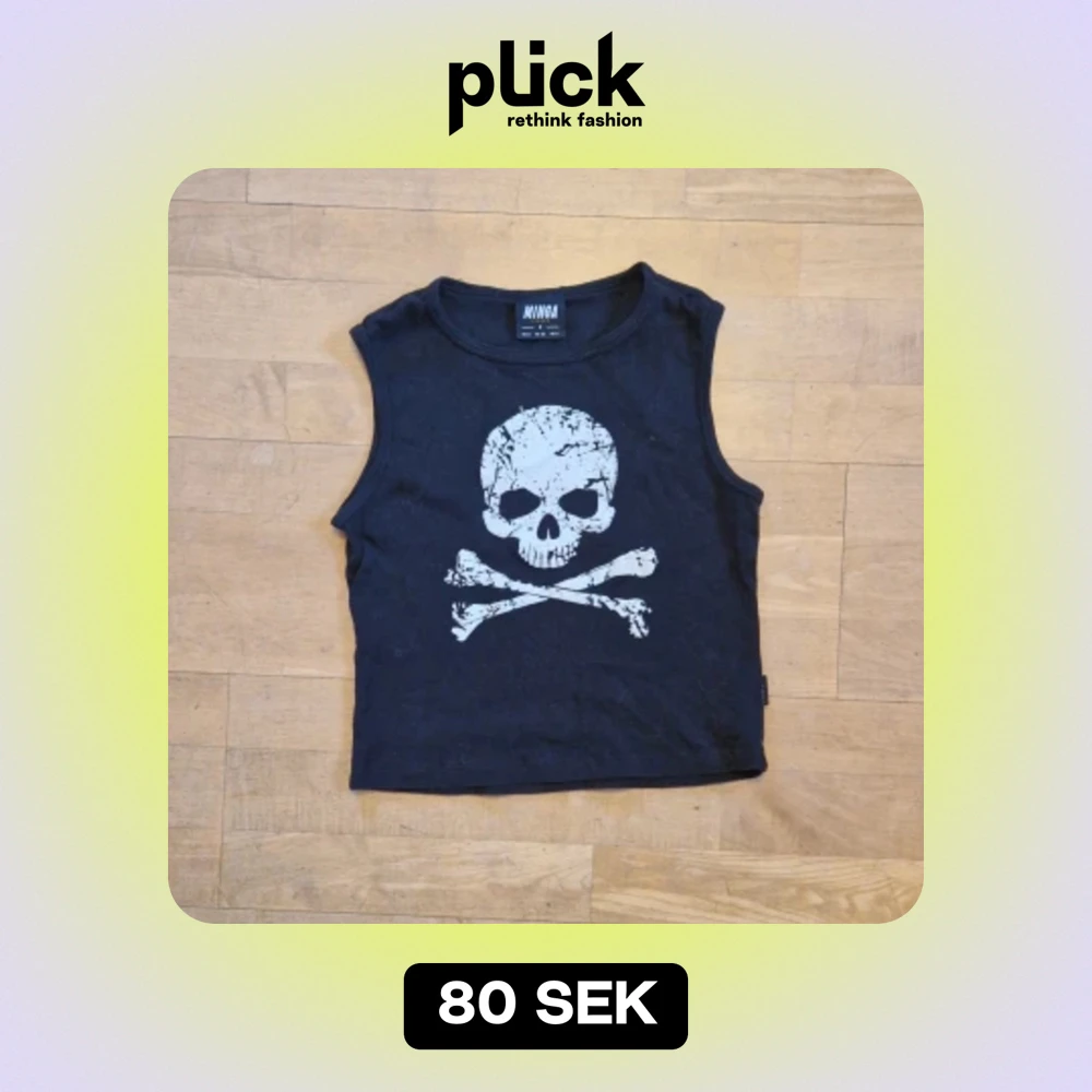 Topp med döskalletryck från minga london. Tror jag har använt den en gång så gott skick. Skönt stretchigt tyg