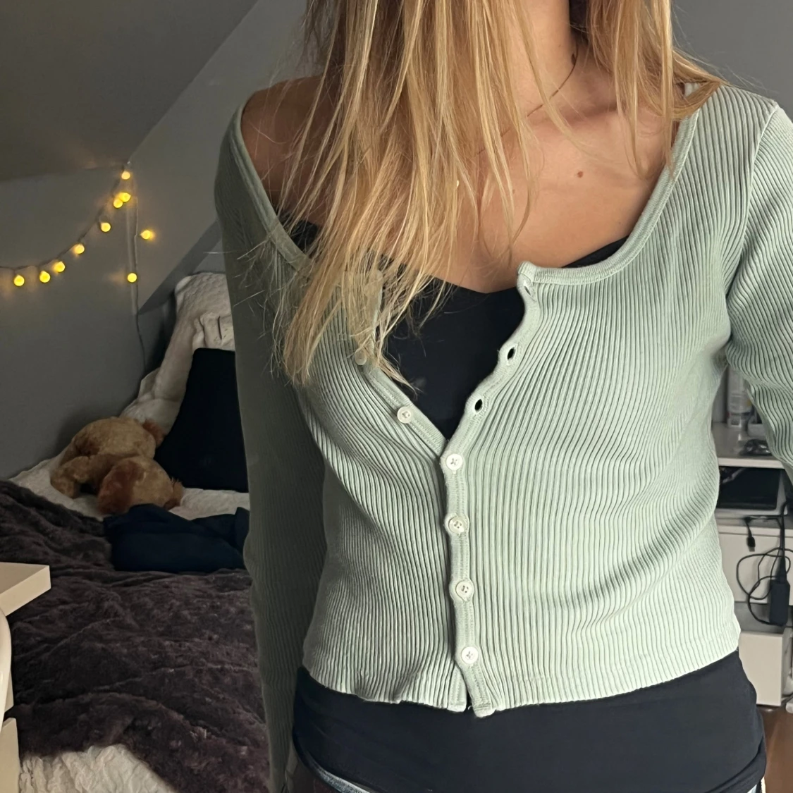 Jätte snygg grön topp! Ett litet hål vid armen som man knappt tänker på (sista bilden) priset kan diskuteras😊skulle uppskatta storleken s/xs