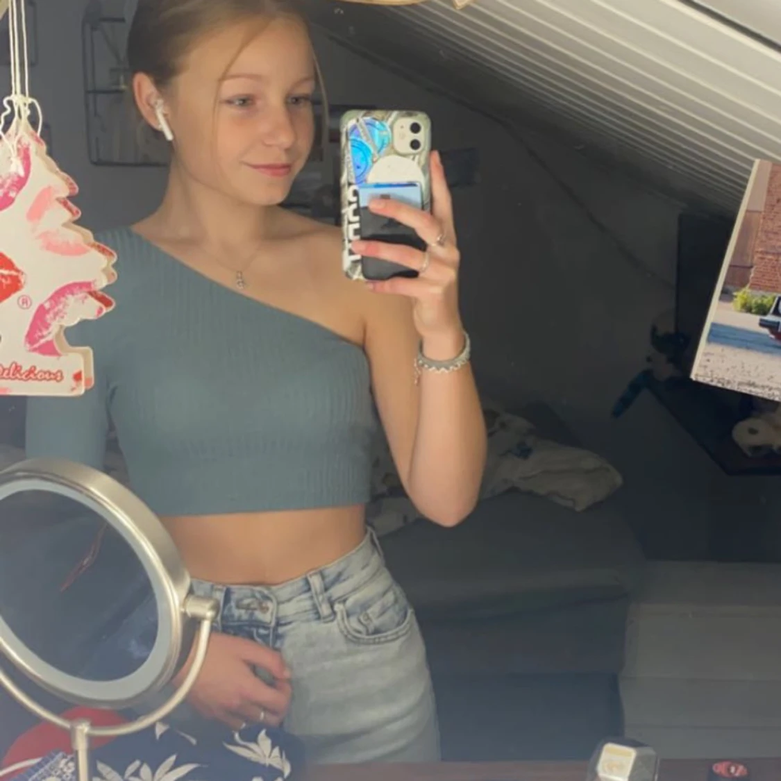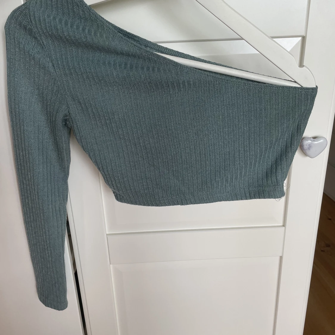 Grön topp med en arm. Ifrån shein. Använd några enstaka gånger och är i fint skick. Storlek S. Går bra för att använda ”köp nu” annars skriv ett meddelande!☺️