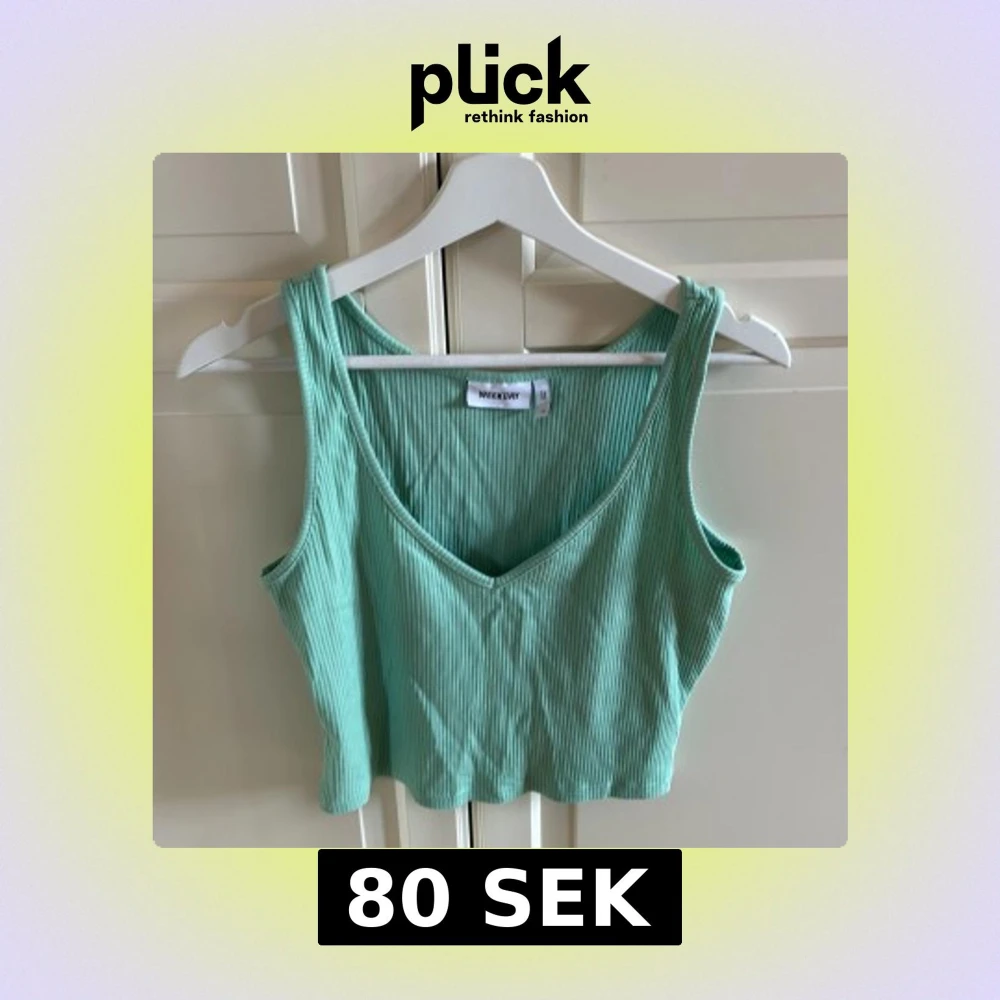 Säljer en mintgrön ribbad linnetopp från Weekday. Toppen är croppad med v-ringning framtill och breda axelband. Tillverkad i mjuk bomullsmix, perfekt för varma dagar. Enkel och stilren design som är lätt att matcha. I fint skick. Storlek M. Tvättlappen är avklippt.