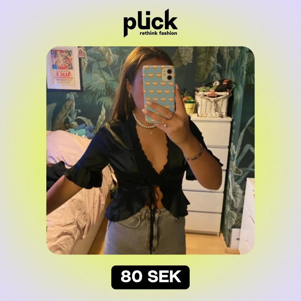 Så söt svart festtopp. Jättefin med en gullig bralett eller fin BH under! Volanger i både ärmar och i botten av tröjan.