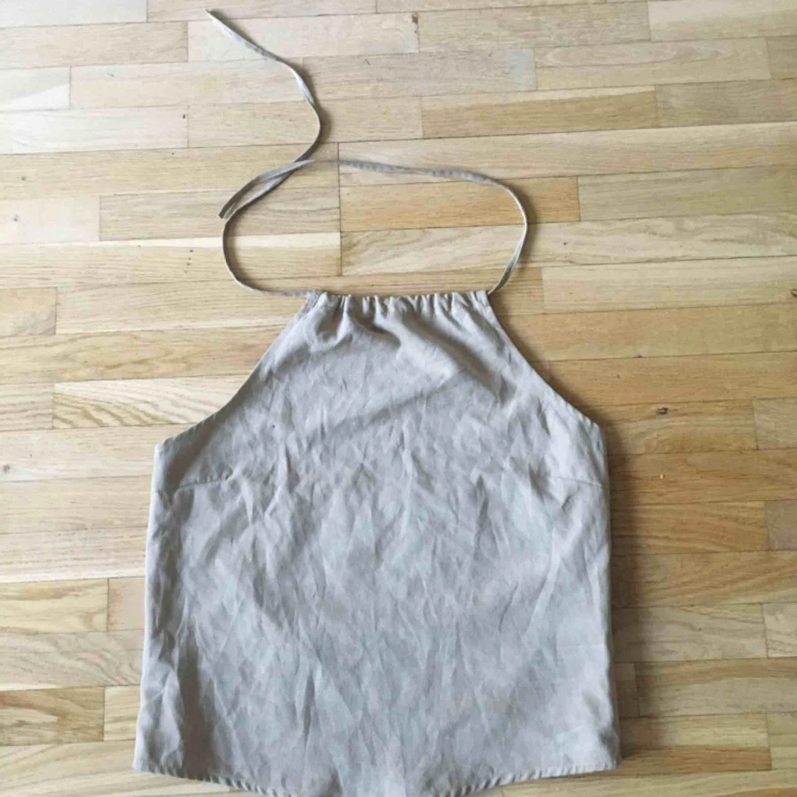 Jättefint linne i mocka-imitation med band som knyts runt halsen, köpt på Humana, strl 40.🌷