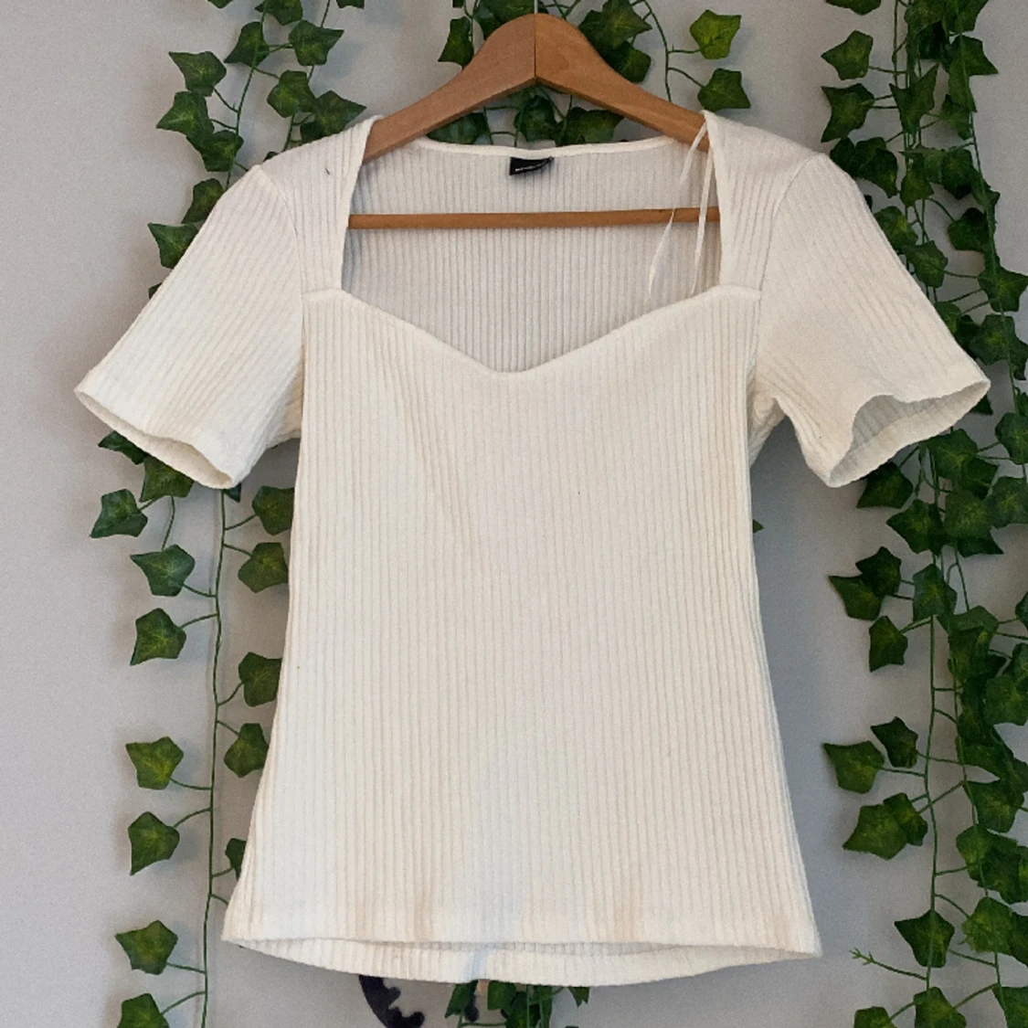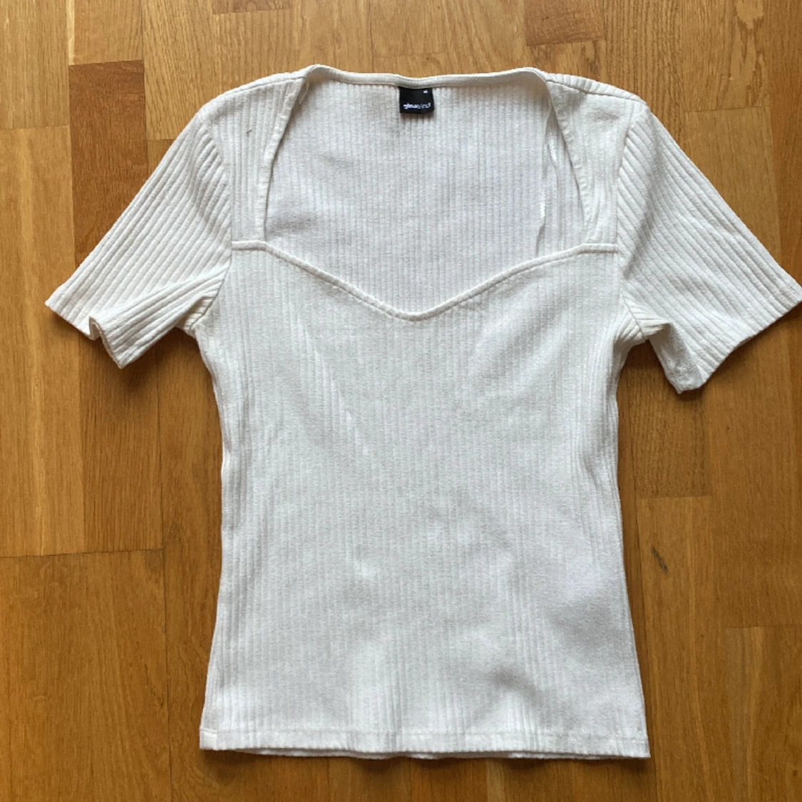 Vit tröja med en fin urringning.I ett bra skikt