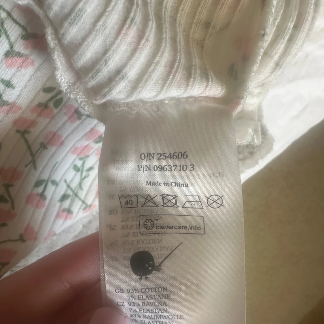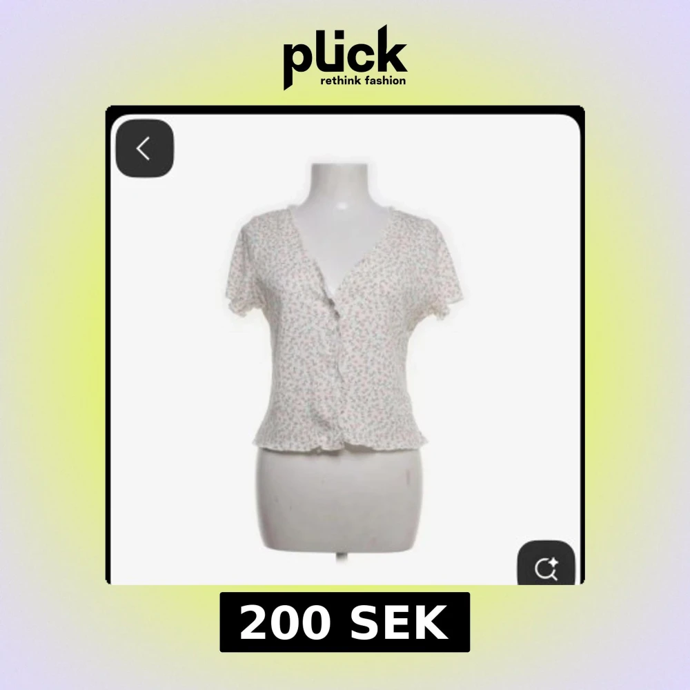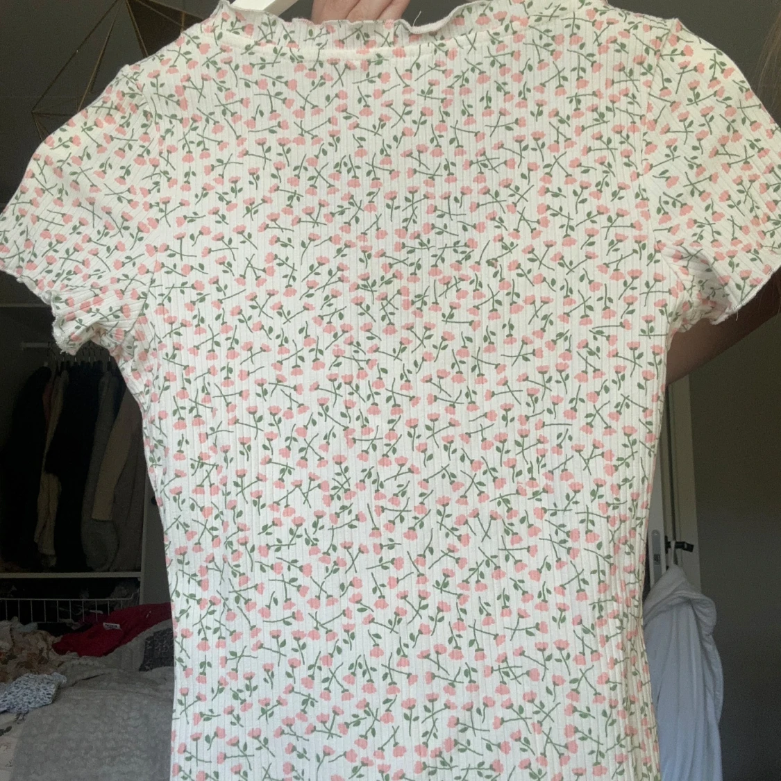 Supersöt kortärmad topp från Monki med blommigt mönster i rosa och grönt på vit botten. Toppen är ribbad, har v-ringning och knappar framtill. Perfekt för en fräsch och somrig look!
