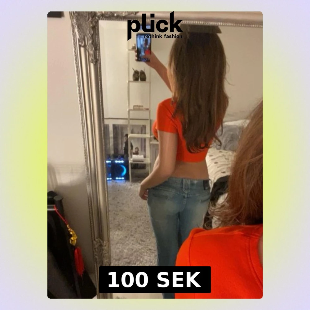 Säljer en snygg orange croppad topp från Monki i ribbad bomull. Toppen har korta ärmar och rund halsringning, perfekt för dig som gillar färgstarka och trendiga plagg. Passar till jeans eller kjol för en cool look.