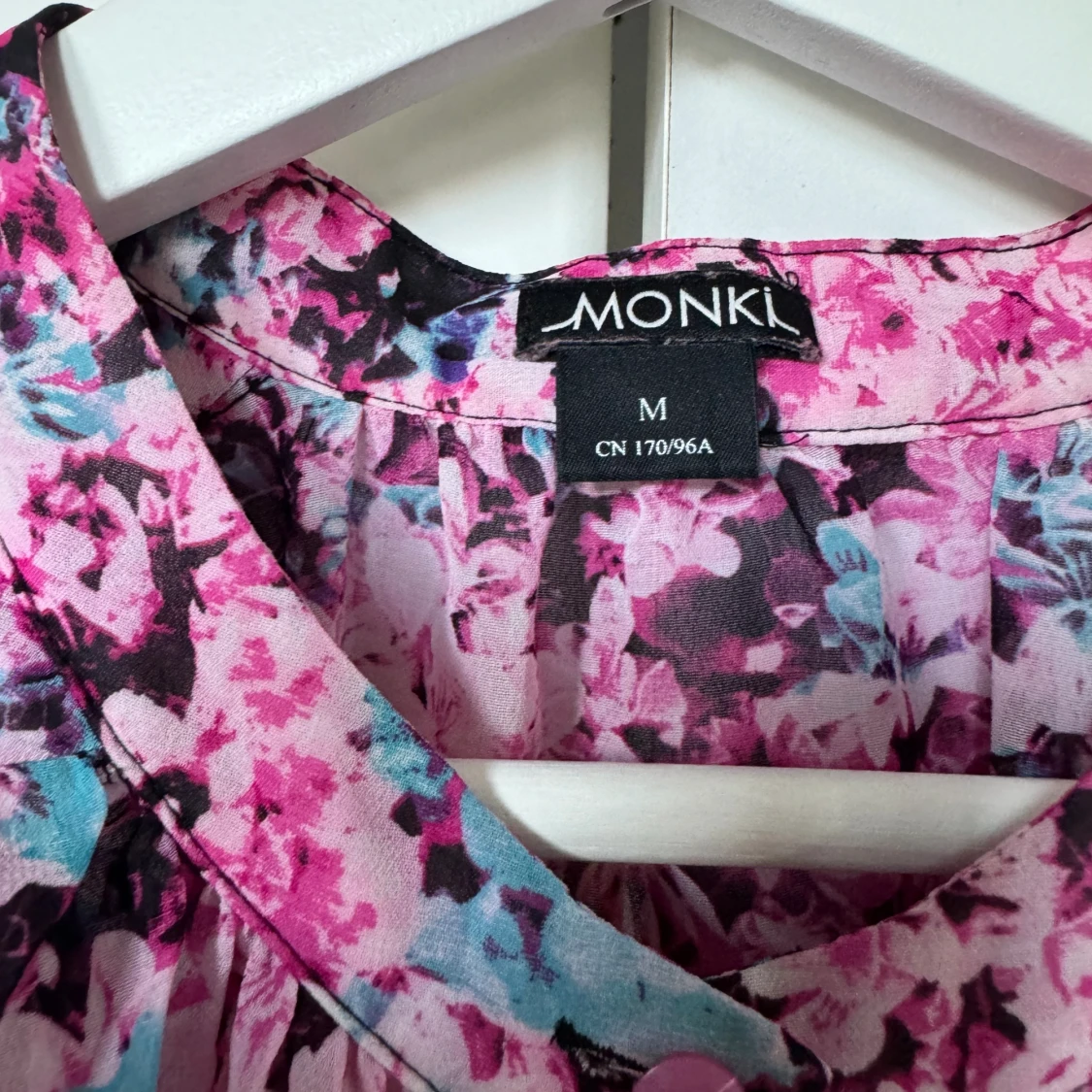 Blommig blus från Monki, storlek M. Använd men i nyskick, inget synligt slitage. Knappar framtill.