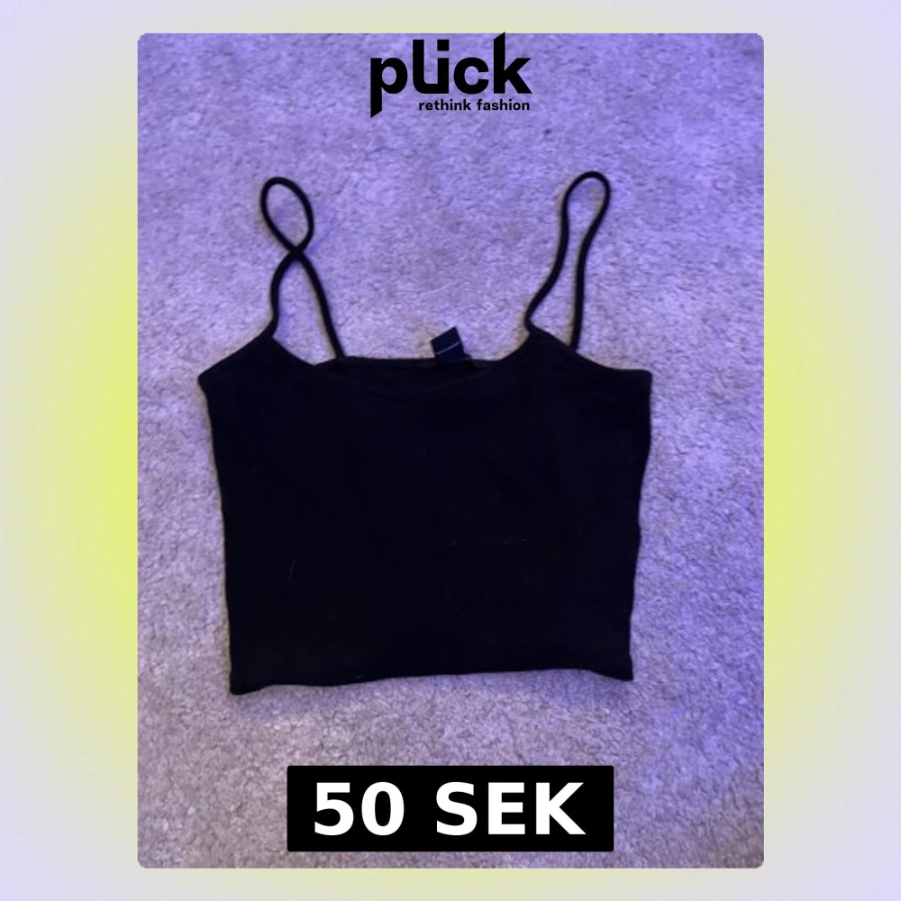 Svart linnetopp från Monki i storlek XS. Toppen har smala axelband och en rak, croppad passform. Materialet är mjukt och stretchigt, perfekt för att styla med jeans eller kjol. Enkel och stilren design som funkar till många looks.