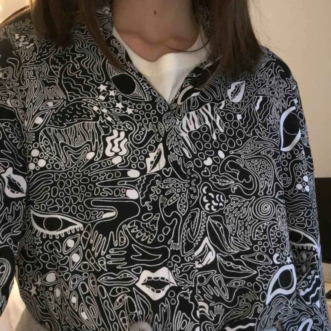 asball blus från monki! snyggaste trycket ever, har bara haft på mig den två gånger, men den har dock några fläckar på sidan längst ner som lätt går att dölja om man stoppar in blusen innanför byxorna! pris prutbart🖤