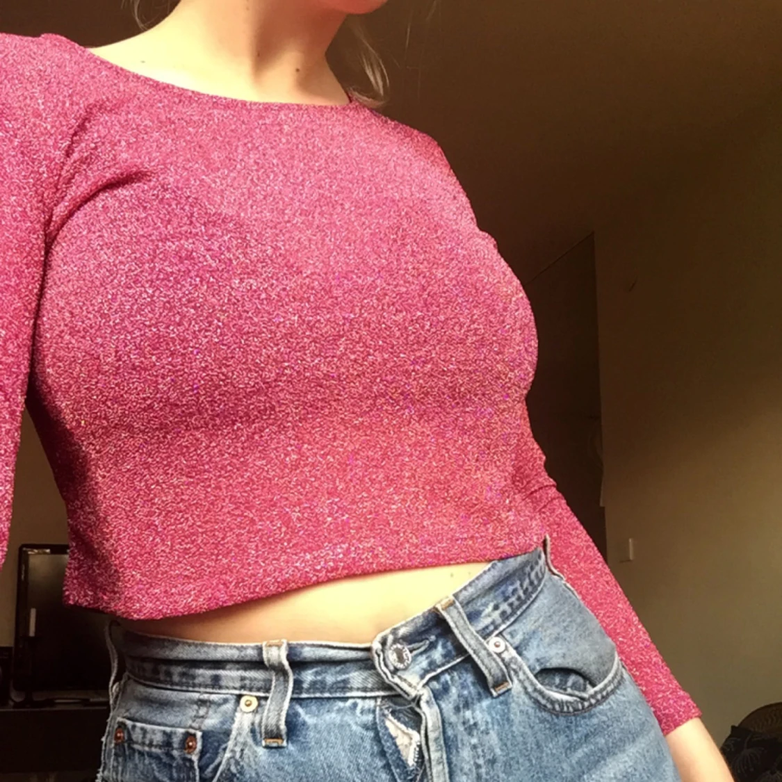 Glittrig tröja från Monki. Aldrig använd! Storlek M Möts upp i södra Stockholm eller så står köparen för frakt!