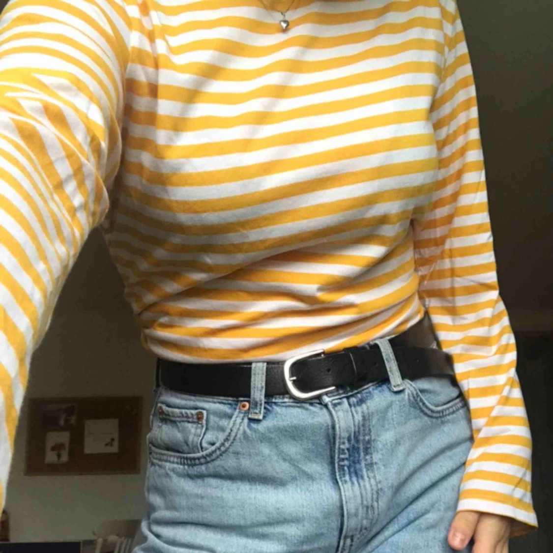 Gul- och vitrandig tröja från Monki! Använd men i fint skick, inköpt för ett år sedan men använder inte längre. I storlek S men är ganska stor i storleken, skönt material! Frakten inräknad i priset!🌞