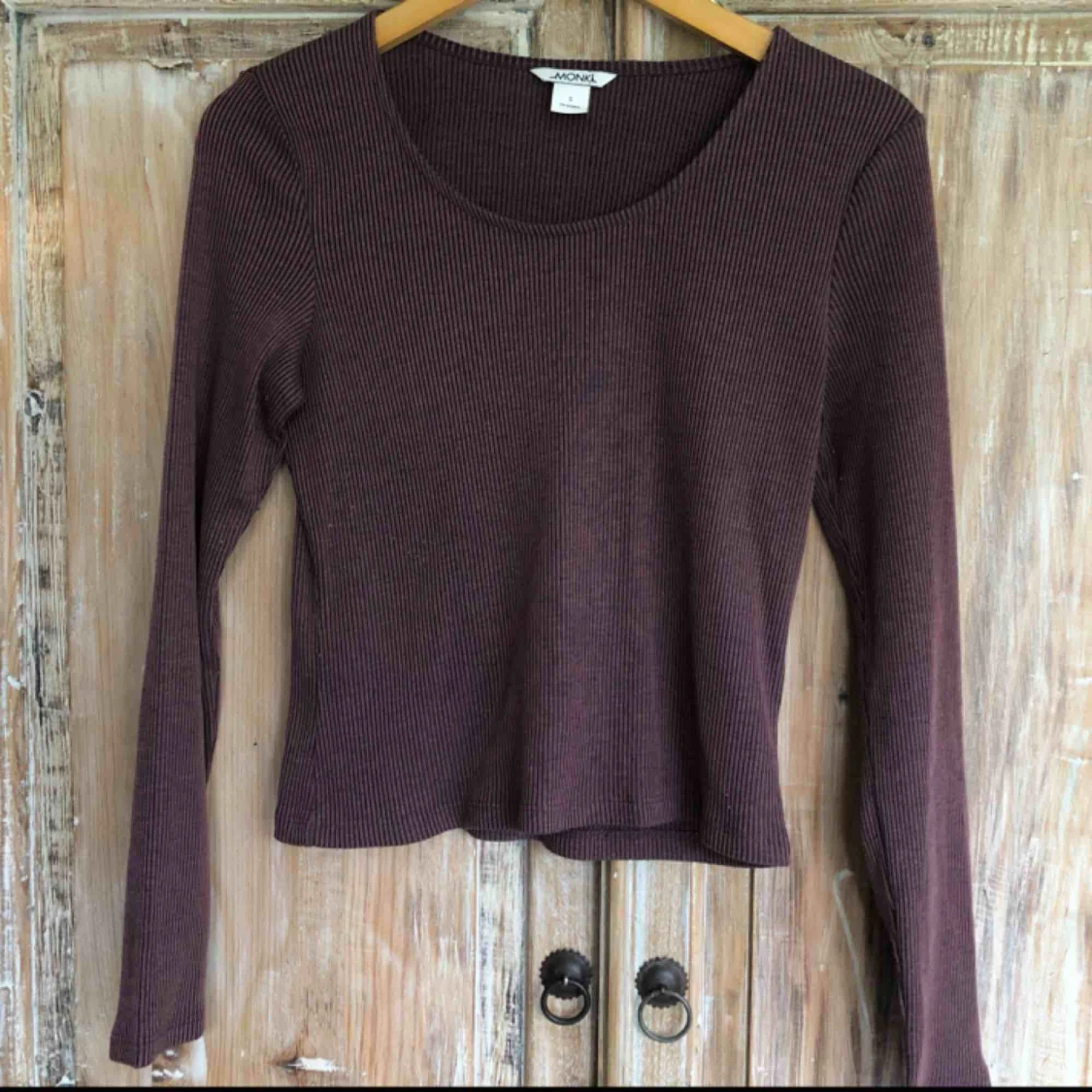 Ribbed långärmad tröja från Monki. Fint skick, i stort sett oanvänd då den är lite för liten för mig. Dov mörklila färg. Frakt ej inkluderat.